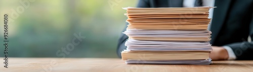 Business under bankruptcy reorganization, with piles of financial statements and legal notices, representing the restructuring phase