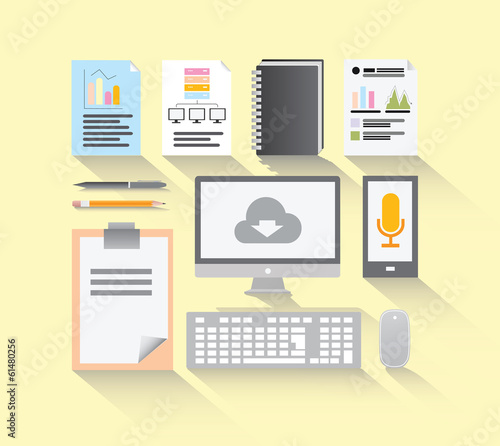 digital, illustration, graphic, computer graphic, vector, device, tablet, notebook, notepad, clipboard, crayons, pen, keyboard, mouse, book, graph, chart, datum, analysis, paperwork