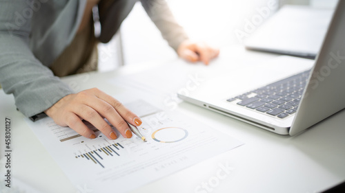 Business woman Accountant investment risk analysis. saving money for Stock market trading with calculator. Accountancy Concept.