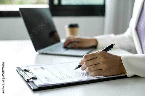 Business woman employer Check history resume hiring recruit looking cv resume to hire candidates, analyzing information before job interview. Recruitment concepts