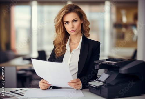female, person, office, business, businesswoman, work, secretary, woman, job, adult, young, caucasian, attractive, lady, professional, beautiful, men at work, executive, white, pretty, corporate, portrait, occupation, technology, workplace, computer, machine, paper, hand, modern, photocopier, copier