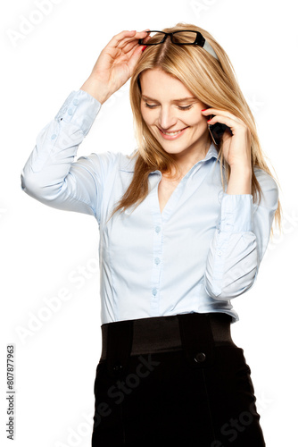 business, woman, phone, call, female, studio, happy, background, white, smile, man, working, work, mobile, talking, men at work, conversation, contact, news, consulting, communication, talk, network, networking, app, white background, feedback, phone call, alone, adult, technology, person, online, mobile phone, confident, professional, smartphone, tech, job, space, web, listening, happiness, employee, discussion, staff, career, positive, proud