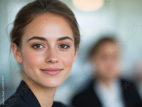business, woman, office, corporate, professional, smiling, portrait, female, employee, executive, young, confidence, suit, work, career, job, success, happy, indoor, caucasian, adult, brunette, person, human, meeting, leadership