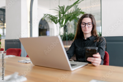 technology, woman, female, business, work, businesswoman, beautiful, sitting, digital, computer, cyberspace, modern, young, laptop, home, portrait, assistant, secretary, goggles, confident, executive, smile, office, happy, caucasian, wireless, information, online, marketing, smart