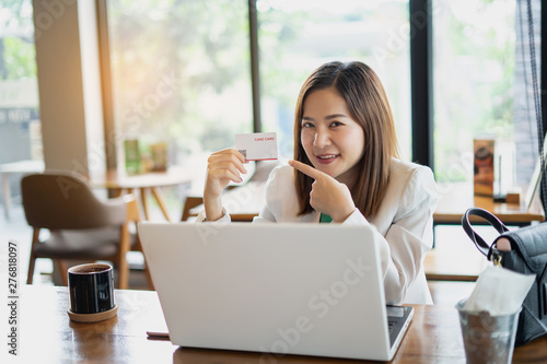business woman working with use computer and smartphone in coffee shop. business relaxing and break time. freelance working and freedom work. business finance success.