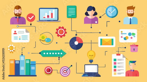 Business Workflow and Data Management Illustration - Flat Design Concept