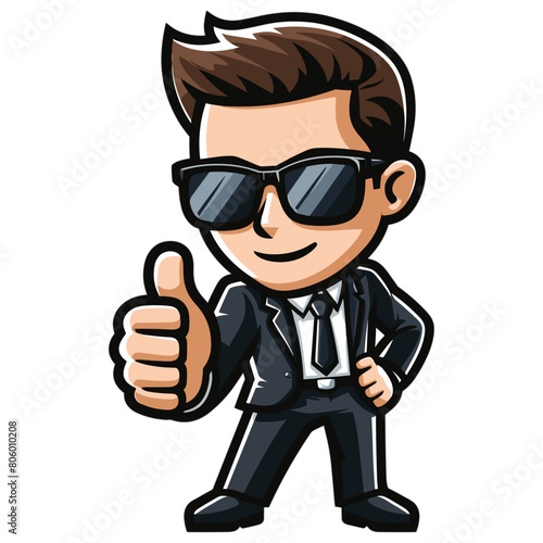 Businessman cartoon with sunglasses cool pose mascot illustration on white background