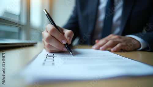 Businessman checks document steps with checkboxes ensuring regulations practices policies rules terms and conditions and corporate governance documents are followed. concept as Businessman reviews doc
