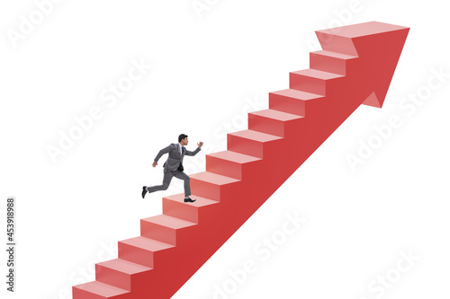Businessman climbing career ladder in business concept