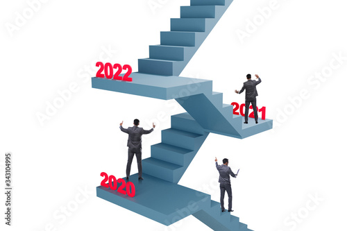 Businessman climbing stairs on yearly basis