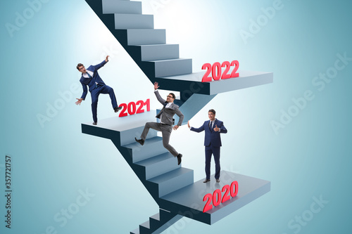 Businessman climbing stairs on yearly basis