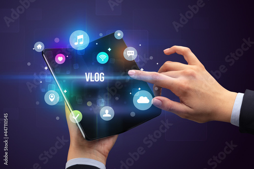 smart, multimedia, social network, social, communication, hand, online, media, concept, young, lifestyle, web, contact, cyberspace, messaging, app, flex, prototype, folded, futuristic, mobile phone, display, mobile, phone, flexible, curved, modern, elastic, unfold, innovation, cellular, touch, touch screen, screen, mobile phone, phone, future, device, smartphone, contraption, foldable