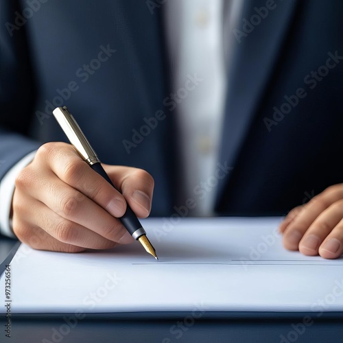 Businessman holding a pen, ready to sign a revised contract, negotiation terms, contract signing