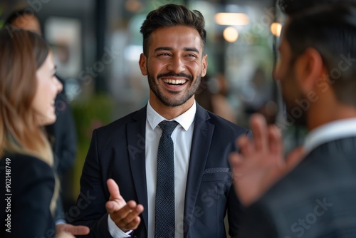 businessman, suit, laughing, engaging, colleague, office, work, professional, happy, meeting, team, communication, interaction, fun, relaxed, friendly, corporate, career, success, adult, male, executive, leader, group, discussion, presentation, boardroom, conference, table, chair, desk, laptop, computer, paperwork, file, briefcase