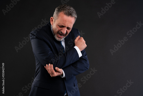 Businessman in pain holding his elbow