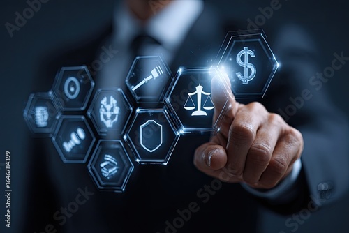 businessman, legal, technology, hologram, icon, justice, scale, dollar, security, protection, law, contract, agreements, digital, interface, system, datum, decision, judgement, right, process, finance, investment, compliance, transparency, authority, power, control, influence, governance, regulation, enforcement, safety, privacy, integrity, ethic, solution, innovation, modern, future, sharpened, action, progress, strategy, expertise, success, management