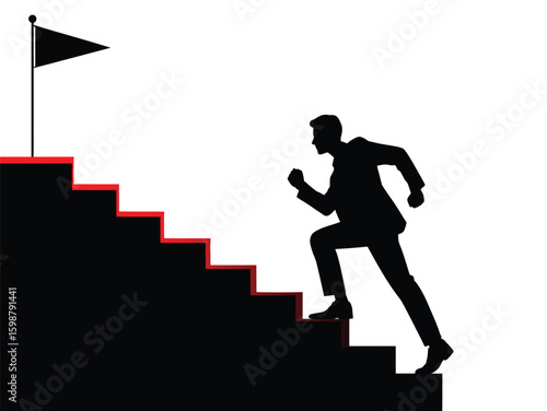 businessman, climbing, stair, silhouette, vector, success, business, career, growth, achievement, progress, leadership, challenge, development, future, ambition, upward, journey, path, motivation, manager, professional, corporate, abstract, graphic, icon, symbol, shape, man, person, human, male, entrepreneur, executive