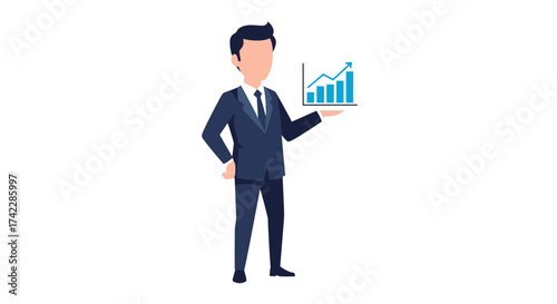 businessman, success, growth, presentation, suit, holding, graph, showing, financial, and