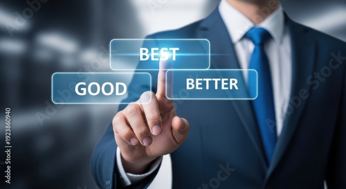 businessman, suit, attaching, blue, futuristic, interface, interaction, selection, option, good, feeling better, best, choice, decision, technology, digital, screen, touch, hand, finger, pointing, selecting, corporate, professional, office, background, blurred, city, skyscraper, window, light, innovation, progress, improvement, quality, rating, evaluation, comparison, analysis, strategy, planning, development, growth, success, achievement, career, goal, ambition
