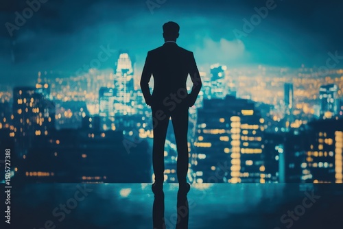 businessman, silhouette, night, city, skyline, light, confident, urban, background, professional, success, office, standing, glow, skyscraper, powerful, leadership, male, downtown, modern, ambition, executive, shadow, corporate, person, manager, goal, vision, scenery, bright, authority, atmosphere, finance, building, inspiration, lifestyle, serious, tall, future, strength, city landscape
