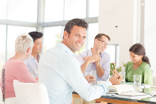 Businessman smiling in meeting