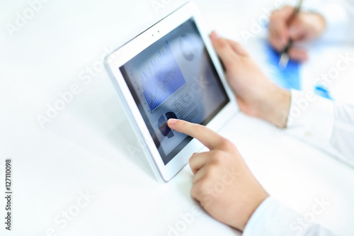 businessman studying Finance data on your tablet