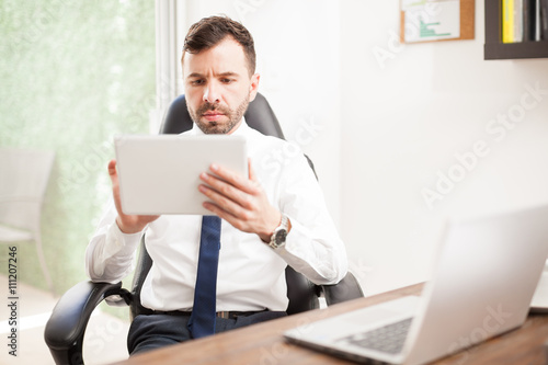 work, young adult, adult, 30s, business, latin, hispanic, male, man, guy, beard, indoor, office, workspace, workplace, home, home office, computer, laptop, desk, document, businessman, lawyer, sale, cosy, attaching, photogenic, attractive, goggles, law, lawyer, adviser, corporate, tied-up, shelf, tablet, electronic mail, cyberspace, technology, communication