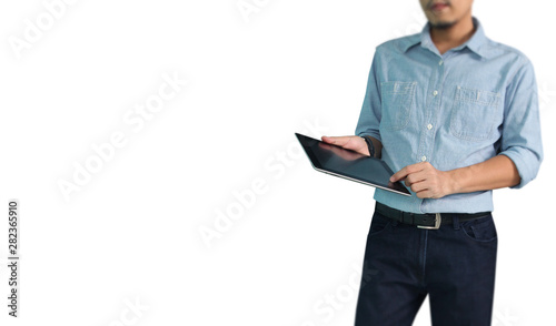 background, business, caucasian, closeup, communication, computer, device, digital, display, hand, holding, cyberspace, lifestyle, looking, man, mobile, pad, people, person, screen, sitting, tablet, technology, touch, touch screen, using, white, woman, young