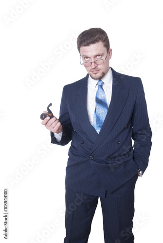 adult, background, beard, boss, business, businessman, businessperson, caucasian, company, corporate, director, executive, gentleman, holding, human, leisure, male, man, manager, 1, pipe, smoking, stubble field, success, successful, suit, white