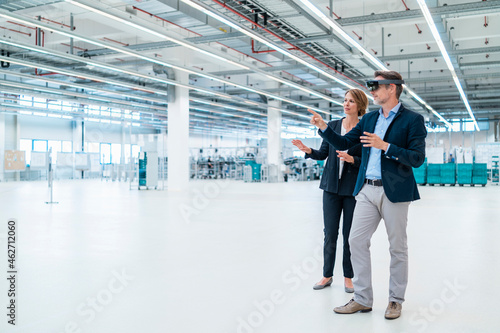 businessman, ar, goggles, businesswoman, factory, hall, digitization, copy space, technology, 2, people, industry, communication, adult, business, woman, man, caucasian, pair, mature, standing, looking, showing, pointing, gesticulate, roomy, gesture, modern, expertise, talking, innovation, new, manager, engineering, suit, display, exploration, development, consultancy, colleague, job, progress, entrepreneur, partnership, management, vision, economy, discussing