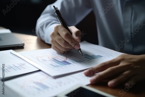 businessman working on graph handle pen in hands