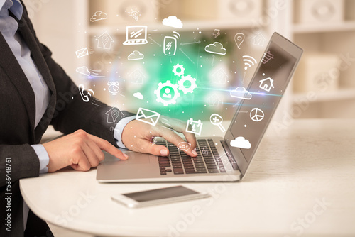 Businessman working on laptop with new business concept