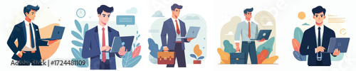 businessman, laptop, office, business, working, corporate, professional, manager, employee, executive, leader, adviser, entrepreneur, startup, digital, modern, online, technology, career, success, teamwork, collaboration, meeting, presentation, project, planning, discussion, finance, strategy, marketing, workplace, illustration, vector, character, office worker, company, business meeting, leadership, job