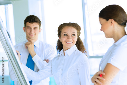 businessmen are meeting near the flipchart