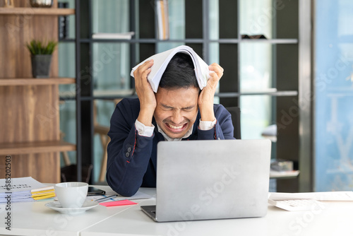 Businessmen asian employee feeling tired stressed concern nervous serius with her work in the office, sad working woman overworked overtime