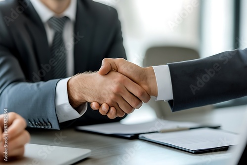 business, agreements, contract, shaking hands, partnership, deal, success, office, meeting, businessman, teamwork, collaboration, negotiation, finance, investment, corporate, professional, handshake, trust, respect, oneness, cooperation, commitment, congratulation, closing, document, signing, pen, laptop, table, suit, attaching, formal, indoor, closeup, hand, man, businessperson, executive, manager, investor, colleague, associate, client, client, partner