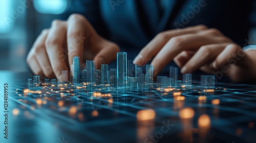 manipulation, hand, business, technology, network, city landscape, architecture, design, model, virtual, future, planning, innovation, development, construction, designing, interaction, digital, businessperson, modern, city, skyscraper, engineering, graphic, abstract, illustration, graphic design, simulation, futuristic