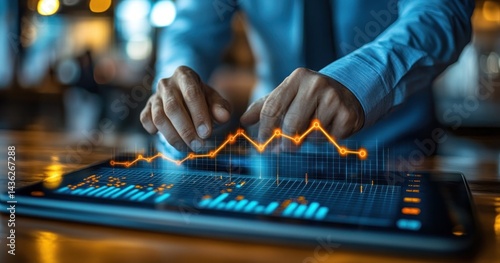 businessperson, financial, datum, tablet, digital, interface, analysis, graph, chart, trend, investment, strategy, market, growth, decayed, performance, indicator, number, figure, technology, progress, upward, downward, screen, hand, touch, interact, information, display, projection, result, planning, decision, business, future, economy, statistic