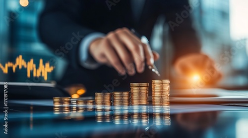 business, finance, growth, investment, money, success, wealth, profit, stack, coin, hand, person, chart, graph, datum, analysis, planning, strategy, accountant, management, office, desk, businessman, career, economy, development, progress, earning, revenue, increase, market, future, potential, opportunity, value, savings, money-making