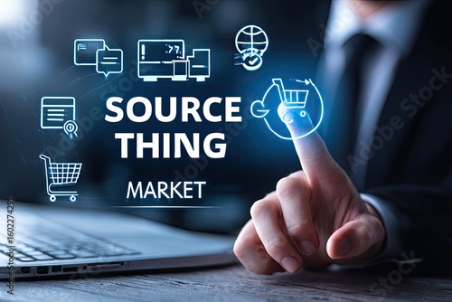 business, person, touch, hologram, interface, source, thing, market, supply, chain, icon, online, technology, digital, innovation, commerce, procurement, sourcing, logistic, production, manufacturing, distribution, sale, marketing, e-business, automation, efficiency, optimization, transparency, global, product, service, businessman, hand, laptop, workspace, modern, future, virtual, system, concept, strategy, growth