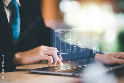 businessperson Updating schedules or planning business online, appointment time management ,work schedule plan ,Strategic Planning Concepts, brainstorm ideas on business plans ,planning software