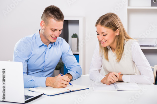 businessman, businesswoman, meeting, teamwork, assistance, partnership, working, business, co-worker, sitting, office, confidence, colleague, team, success, man, woman, businessperson, togetherness, table, adviser, computer, cooperation, office worker, portrait, discussion, document, manager, boss, secretary, expertise, skill, happiness, professional occupation, laptop, female, male, beautiful, missy, young men, two people, smiling, indoor, adult, caucasian