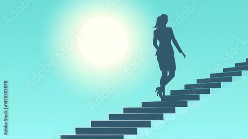 businesswoman, woman, female, silhouette, step, stair, climbing, ascending, success, achievement, ambition, career, progress, growth, future, opportunity, goal, target, destination, journey, path, way, upward, motivation, inspiration, leadership, determination, confidence, power, strength, resilience, perseverance, hope, optimism, bright, sun, light, sky, background, abstract, concept, image
