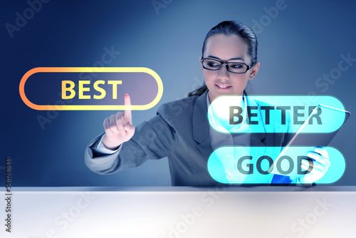 Businesswoman in good better and best concept
