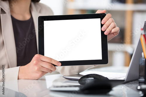 Businesswoman Showing Digital Tablet With Blank Screen