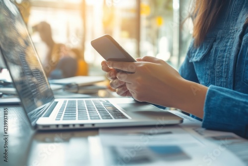office, laptop, smartphone, business, technology, work, computer, cyberspace, communication, connection, woman, businesswoman, mobile, working, typing, desk, hand, closeup, digital, online, device, modern, productivity, resource, networking, engagement, efficiency, collaboration, software, electronic mail, writing, research, innovation, strategy, community, marketing, student, social, remote, application, screen, sharpened, user, information