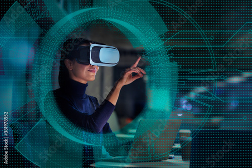 Businesswoman using virtual reality glasses