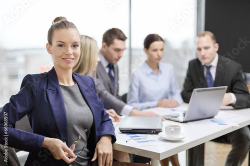 business, meeting, discussing, office, group, laptop, technology, businesswoman, eyeglass, smiling, smile, teamwork, presentation, team, brainstorming, new, modern, having, discussion, watching, looking, goal, corporate, computer, developing, tactic, common, member, management, briefing, work, working, happy, friendly, partner, colleague, men at work, young, woman, professional, people, man, businesswoman, businessman, hot drink, cyberspace, online, video, call