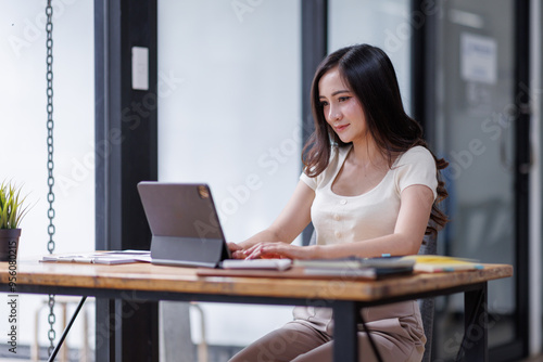 asian, account, tablet, woman, business, technology, office, computer, laptop, digital, marketing, finance, work, cyberspace, lifestyle, graph, desk, person, investment, chart, modern, strategy, corporate, management, financial, accounting, research, calculating machine, keyboard, device, screen, information, accountant, businesswoman, workplace, analysis, statistic, interactive, professional, analysing, document, female, indoor, one person, paperwork, planning, project, report