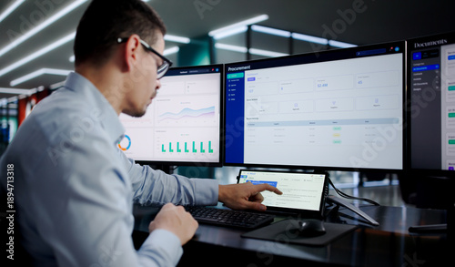 Busy Hispanic IT Specialist Multitasking